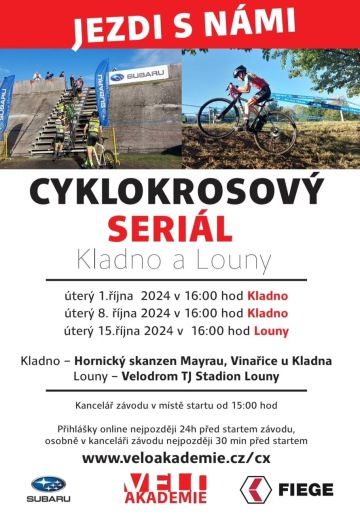 Seriál tří úterních závodů v cyklokrosu nově uspořádá Veloakadamie se sídlem na Kladně. "Přijde nám, že je málo závodů hlavně pro děti. Jezdili jsme do Loun na středeční cyklokrosy a vnímáme to tak, že pro děti je potřeba závody pořádat, protože víme, že závod je nejlepší trénink," řekl za pořadatele Martin Raufer.